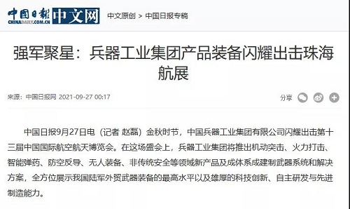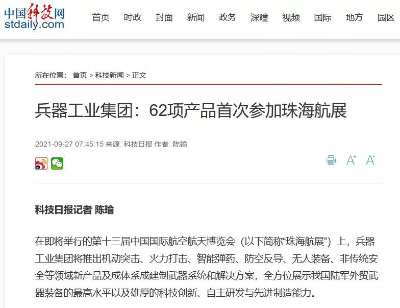 央廣網:兵器工業集團將展出150多項展品 超四成首展|中國航展萬里行2021-09-30