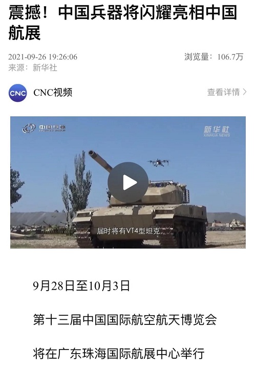 圖片中國:強軍聚星 兵器工業集團產品裝備閃耀中國航展2021-09-30