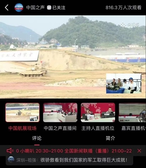 央視《新聞聯播》關注航展公眾日中國兵器館情況