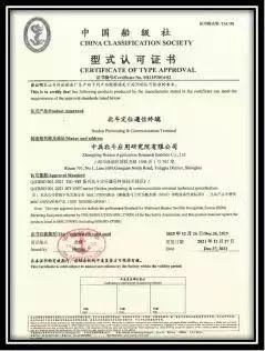 北斗院研制的BD-VMT系列型號北斗三號短報文終端成功通過中國船級社(CCS)的型式認證,成為國內第一款獲得中國船級社(CCS)型式認可證書的北斗三號短報文終端產品。